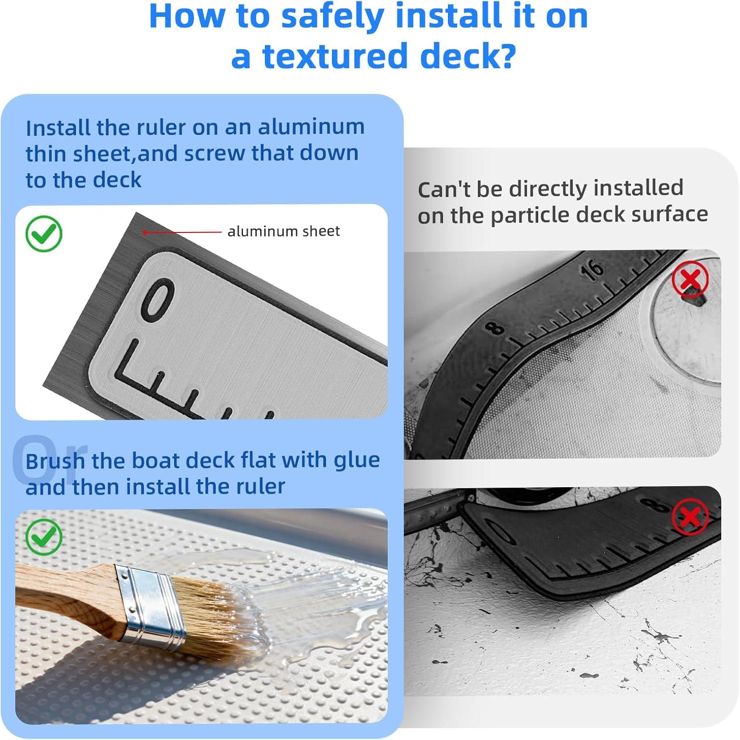 Easy to Install: Fish Measuring Board with peel-and-stick strong Adhesive backing, the fishing ruler can be easily stuck to any smooth surface. If there are particle patterns or unevenness on the installation surface, please use tools to polish the surface flat or add additional glue to ensure that the fish ruler can be firmly installed